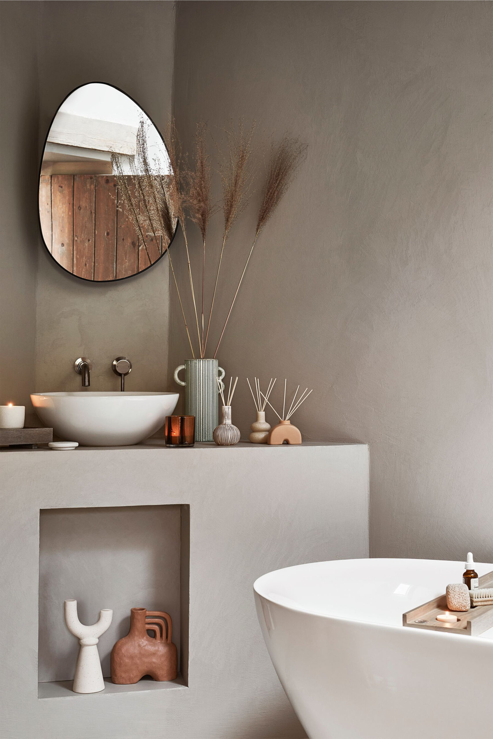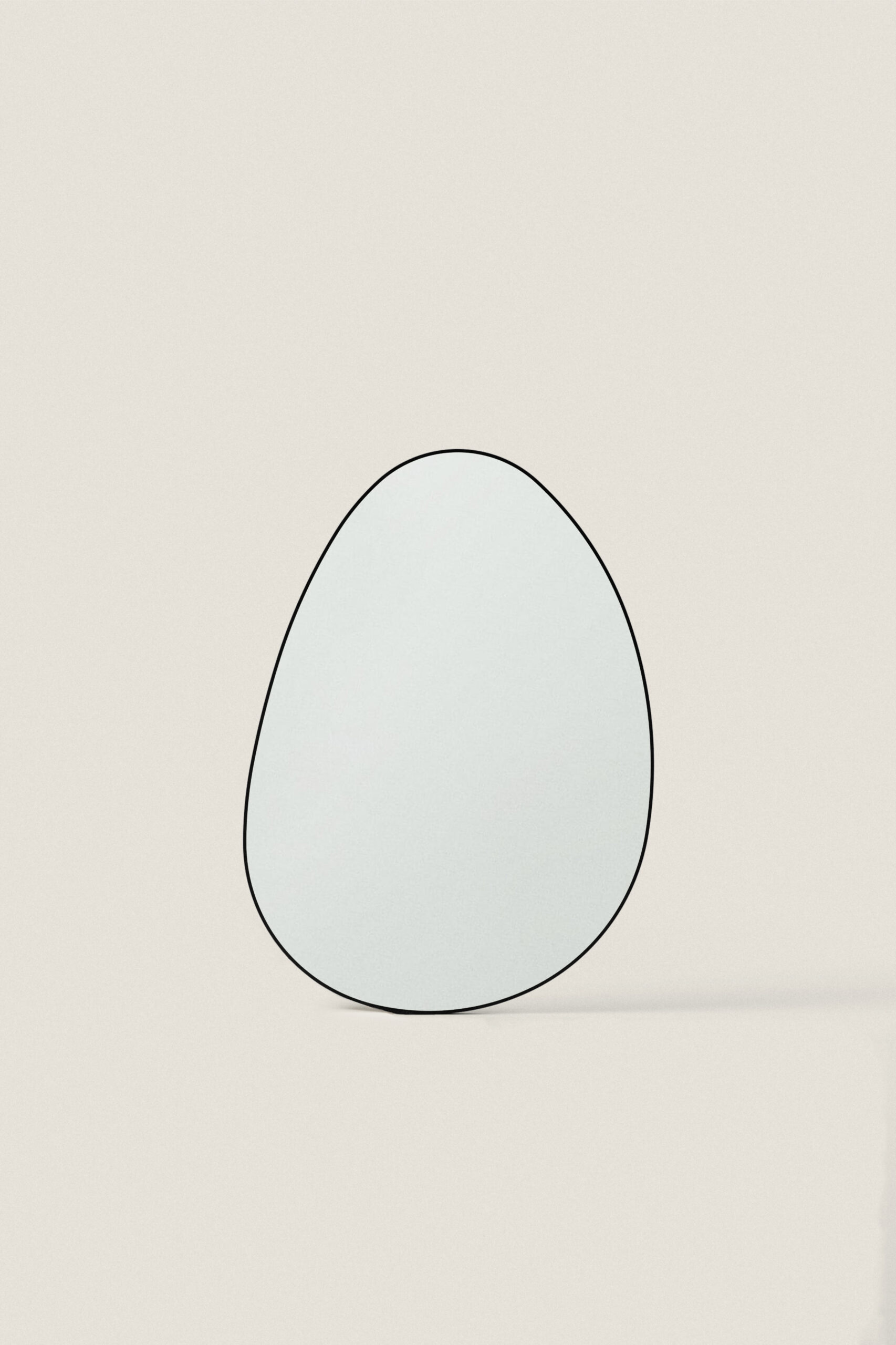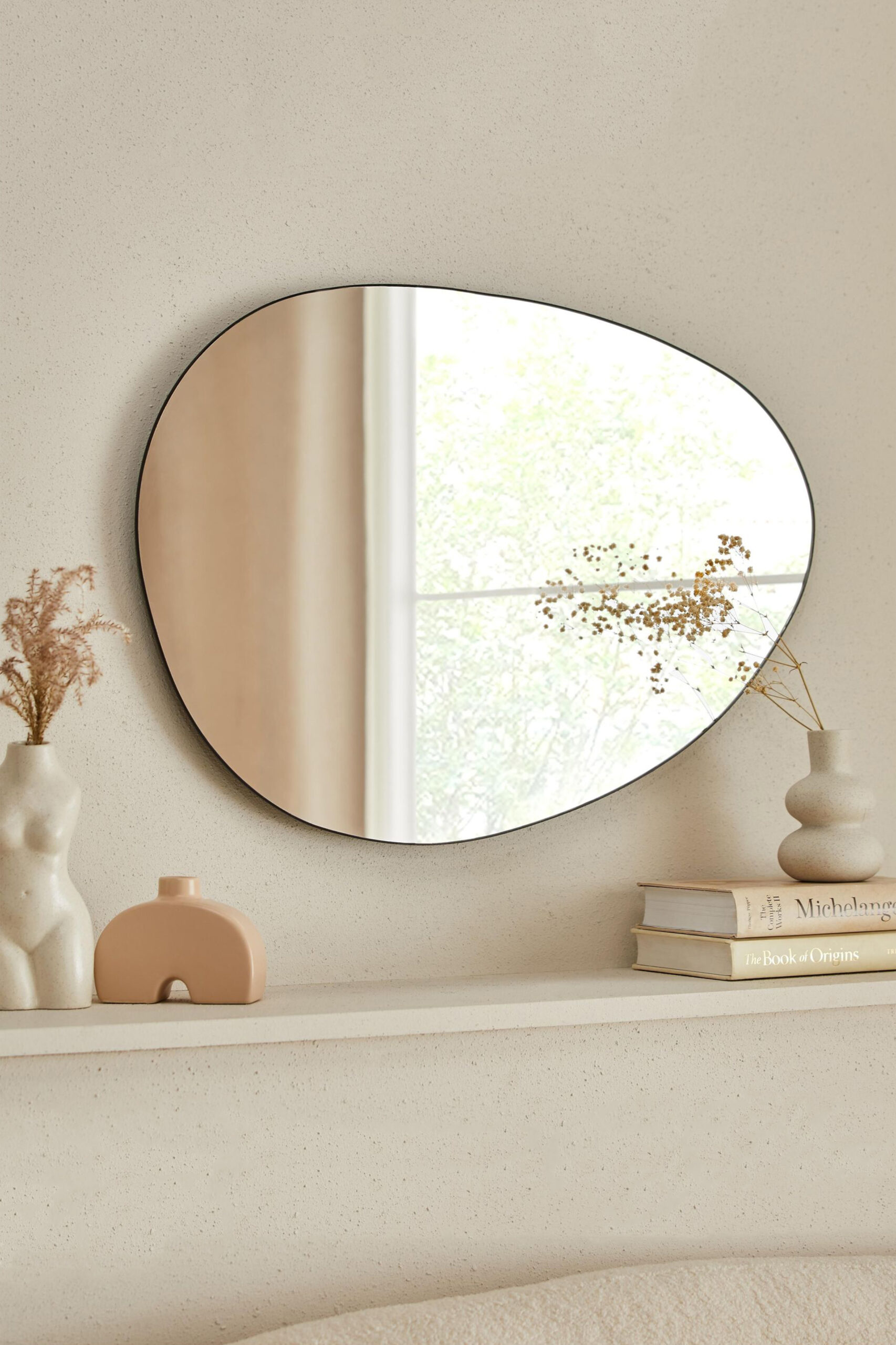 - irregular-shaped wall mirror with a black frame. Through the fixing points at the back, it can be hung vertically or horizontally.
